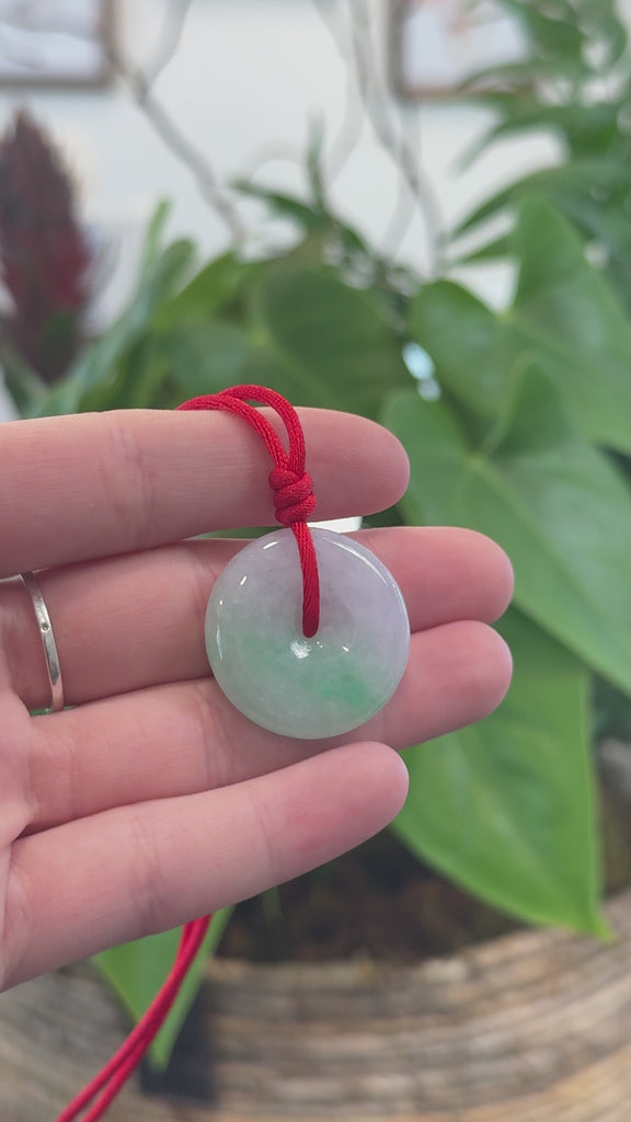 *Design concept--- This pendant is crafted from genuine Burmese lavender green jadeite jade with a smooth, translucent ice texture. just has little bit clouds, Designed in a classic Ping An Kou circle, it symbolizes peace and protection. A meaningful and special gift for yourself or a loved one.