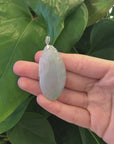 *Design concept-- "Shou Tao" in Chinese literally means Longevity Peach, from a Chinese folklore that in the Chinese mythical heaven, there is a peach tree garden where all the peaches are magical and adds years to your life. This necklace portrays the timeless, good luck symbol in natural ice jadeite jade. This piece is one of a kind and you will not find another like it. It's worn as a good luck charm. Perfect for a gift for a friend or family.
