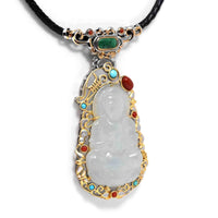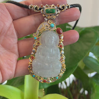 Genuine Burmese Ice White Jadeite Jade Guanyin Pendant Necklace