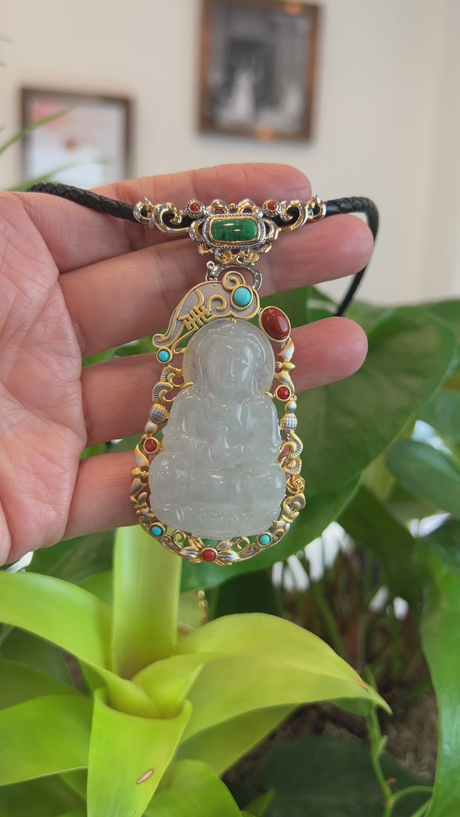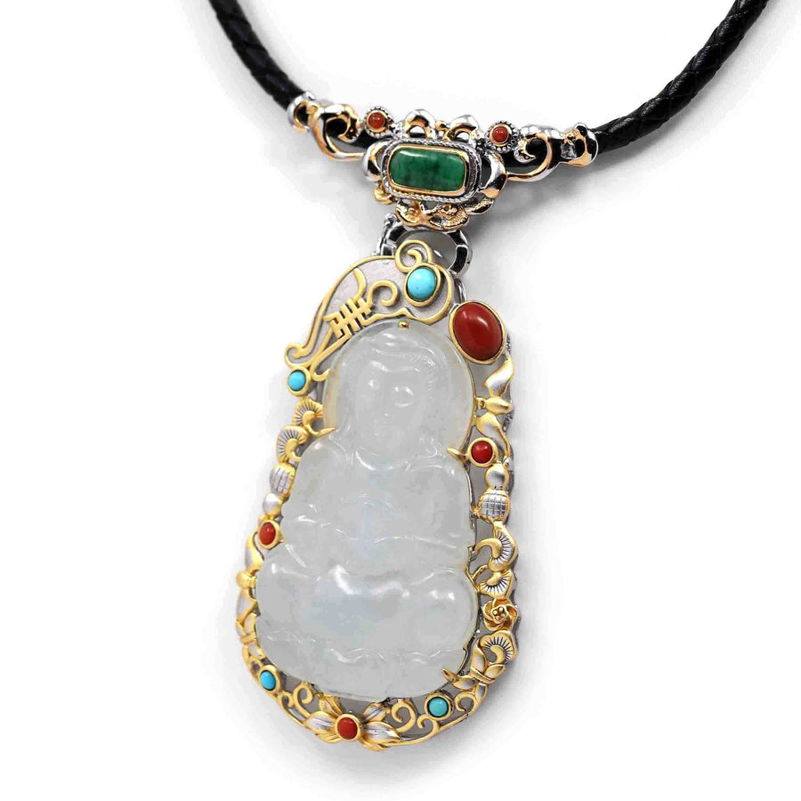 * DETAILS--- Genuine Burmese Jadeite Jade Guanyin Pendant Necklace. This pendant is made with ice white genuine jadeite jade, turquoise and red agate , The jadeite texture is so smooth and translucent. It's very perfect without flaws. The handcraft is great, And the Guanyin looks so kind. You can feel that Guanyin is very kind to you as true life. It's completely beautiful and affordable with antique style. It's a very special gift for yourself or your love.