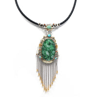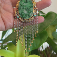 * DETAILS--- Genuine Burmese Jadeite Jade Ru Yi Pendant Necklace. This pendant is made with genuine green jadeite jade, The jadeite texture is ok with translucent. It's very unique setting with two tone silver and turquoise . The handcraft is great, And the jade looks old style with meaning Ru Yi. It's completely beautiful and affordable with perfect jadeite jade. It's bigger and antique style two tone silver. It's a very special gift for yourself or your love.