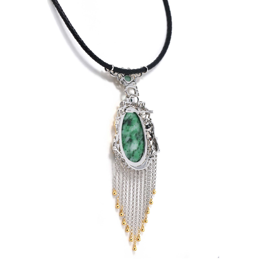 Genuine Burmese Green Jadeite Jade Ru Yi Pendant Necklace with Unique Setting