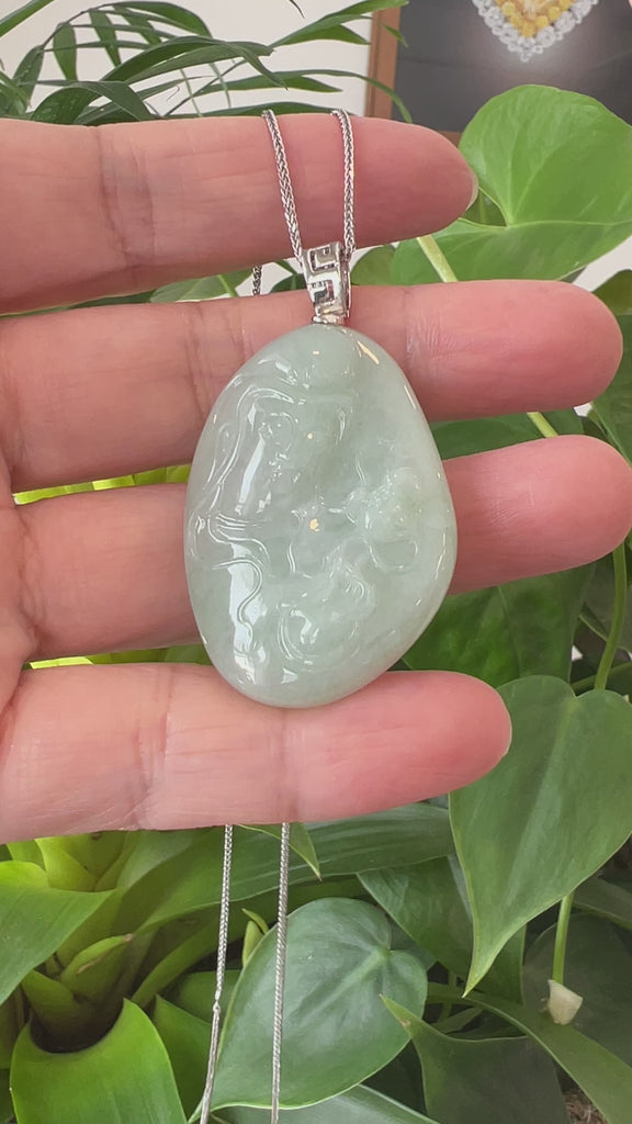 Genuine Burmese light Green Jadeite Jade Guanyin Pendant Necklace