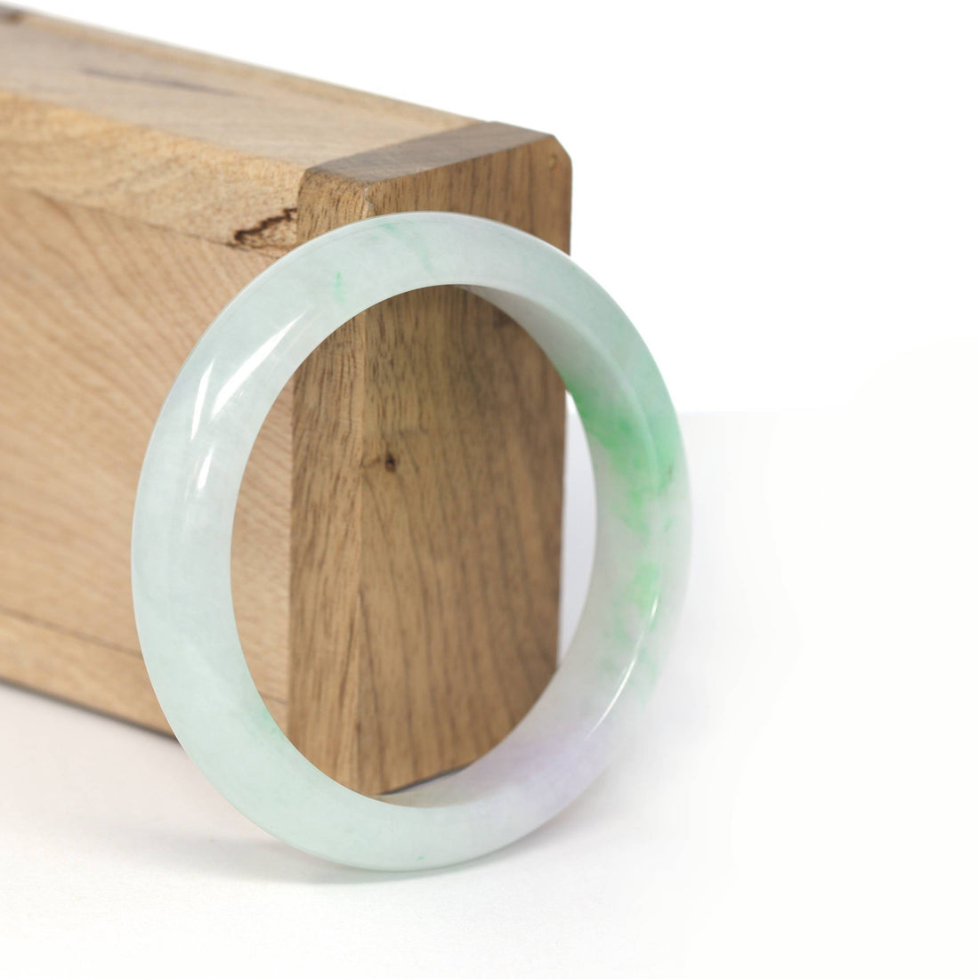 * DETAILS--- Genuine Burmese Jadeite Jade Bangle Bracelet. This bangle is made with very high-quality genuine Burmese green Jadeite jade, the jade texture is transparent and smooth. The green color is truly a mesmerizing combination. The Classic half-round style bracelet, it's gorgeous and affordable with more green colors and good texture. This bangle is characterized by beautiful vibrant green patches. just has a little natural stone line. the bangle does have a beautiful, simple, luxurious look to it. Jadeite jade is a tough stone. It's a special gift for you and your love.