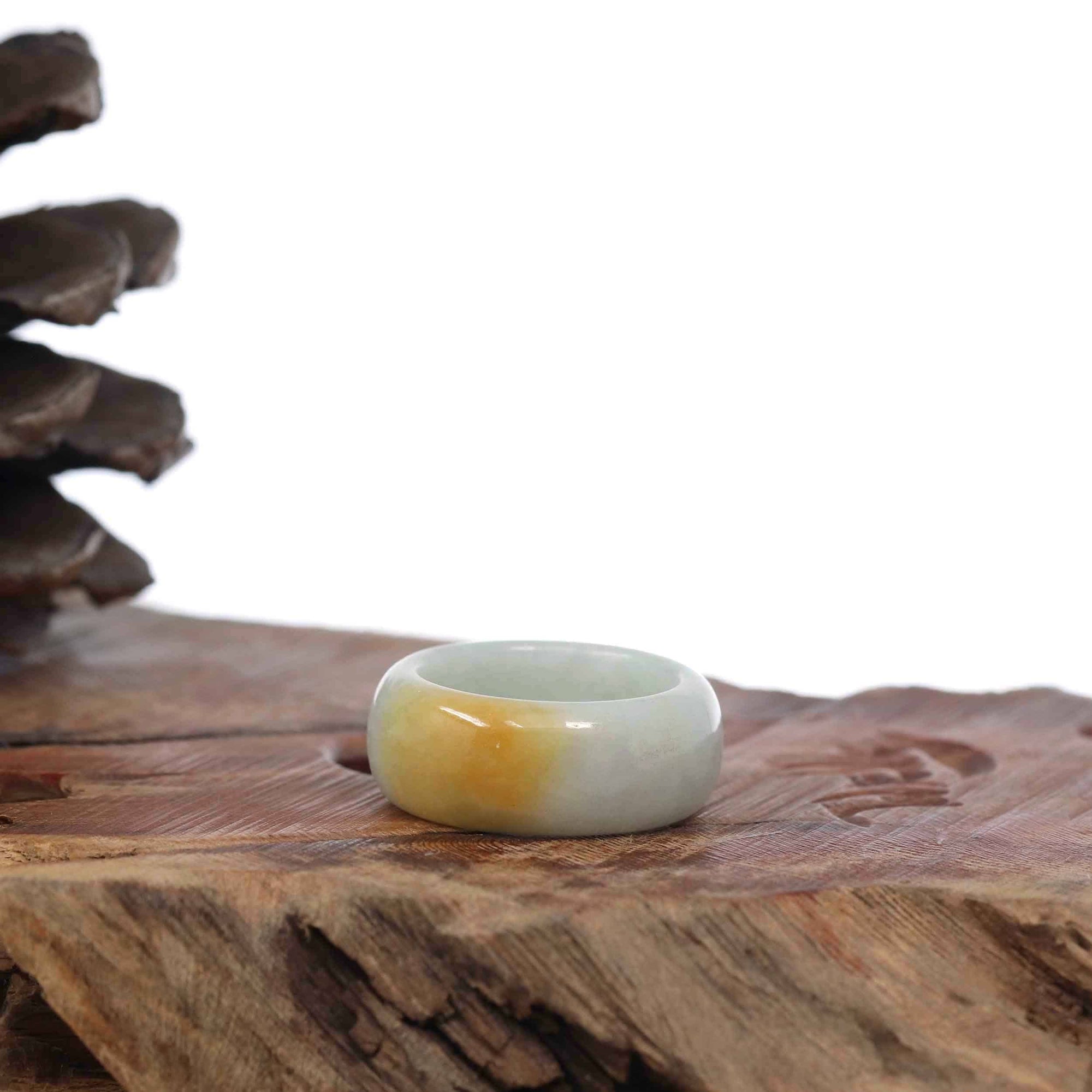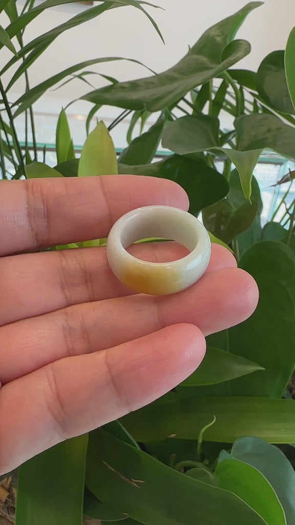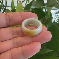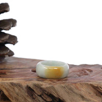 Genuine Burmese Yellow Jadeite Jade Men's Band Ring