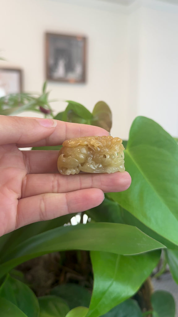 * DESIGN CONCEPT--- Genuine Jadeite Jade PiXiu Pendant Necklace. This pendant is made with genuine honey yellow jadeite jade, The jadeite texture is so smooth and transparent. Perfectly detailed with moving jade ball in it's mouth. It's excellent carving by jade master. The handcraft is spiritual, they say PiXiu is a lucky animal, it's the dragon's ninth son, it's good for money. So lots of people believe that it is "Zhao Cai Pi Xiu"(招财貔貅). This PiXiu is carving so nice, every detail and angle is perfect. The whole piece is completely beautiful with perfect texture jadeite. It's a special gift for men. ( This Pixiu is the right side in pair. )