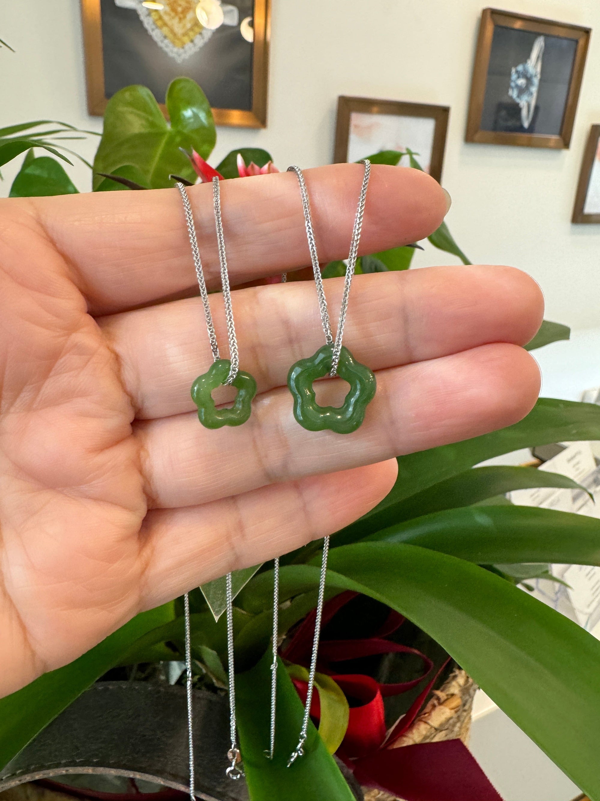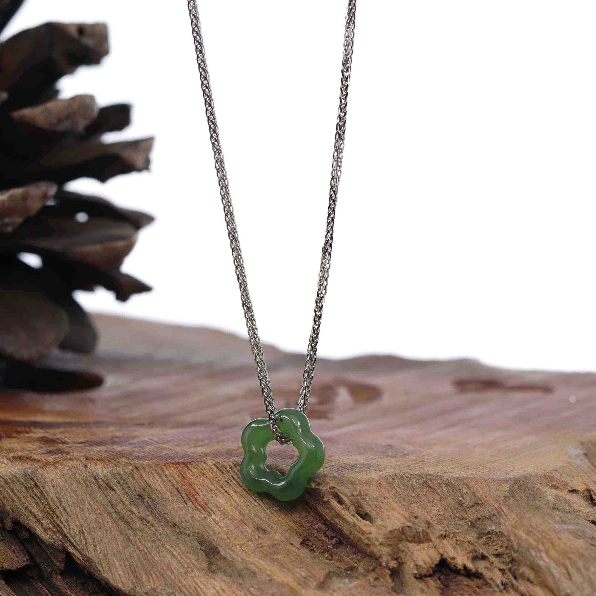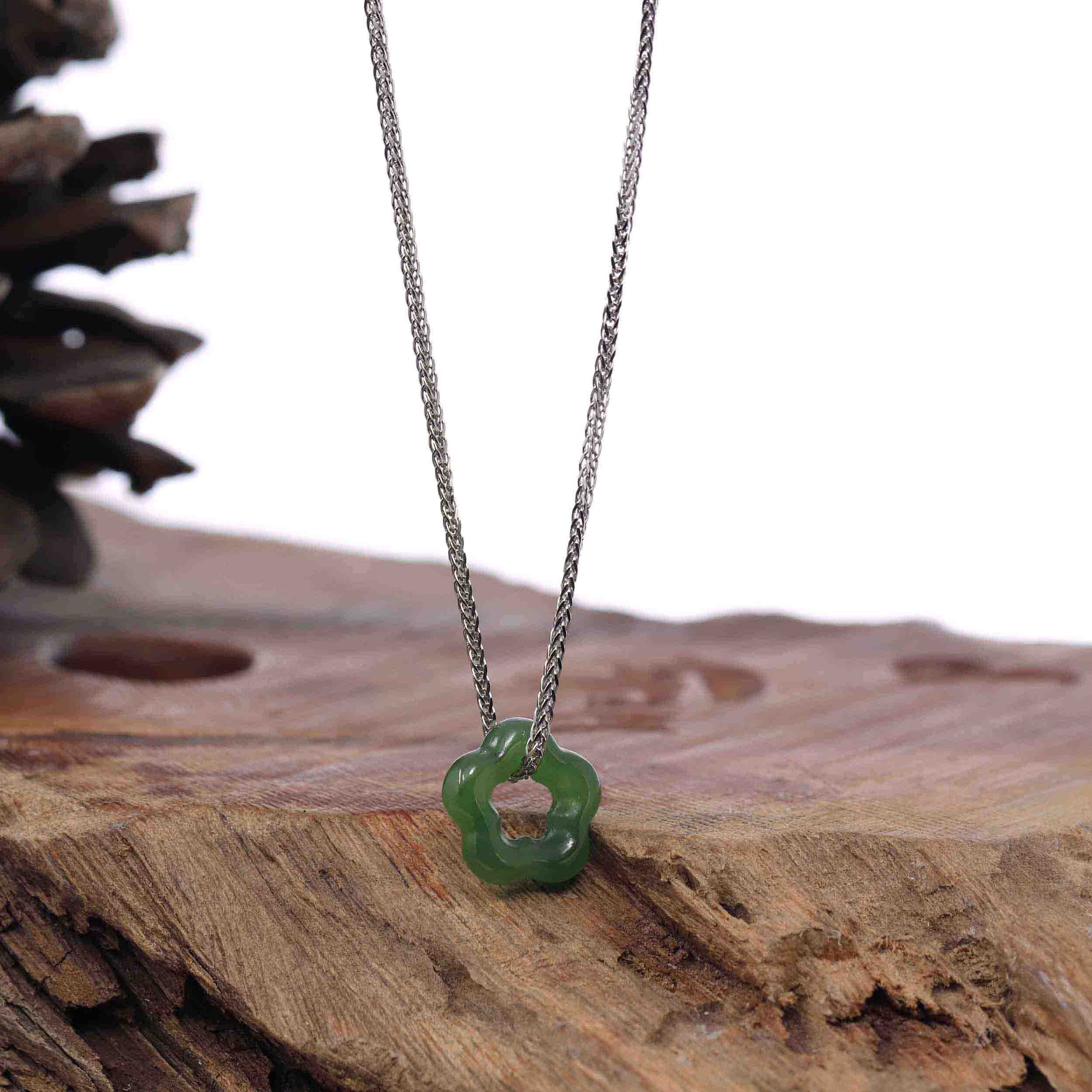 Design Concept--- The simple shape of a clover represents things such as happiness, wholeness, and prosperity. This necklace is made with high-quality genuine He Tian green nephrite jade. Gifting one of these is like wishing the best luck upon your family or loved ones. Or for yourself for positivity and luck! It's a perfect gift.
