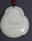 Genuine HeTian White Nephrite Jade Happy Buddha Pendant Necklace