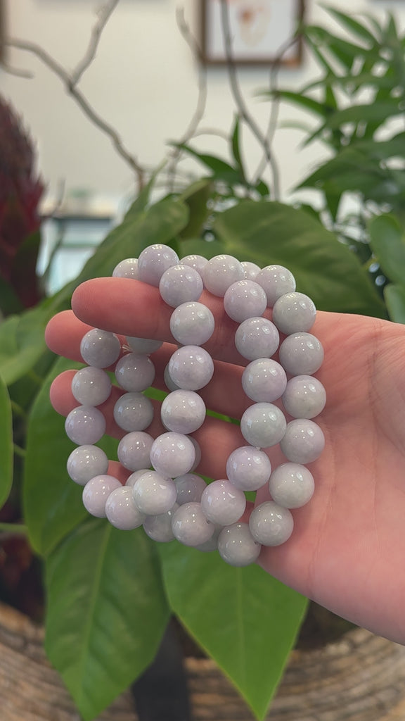 Genuine Jadeite Jade Round Lavender Beads Bracelet ( 11.5 mm)