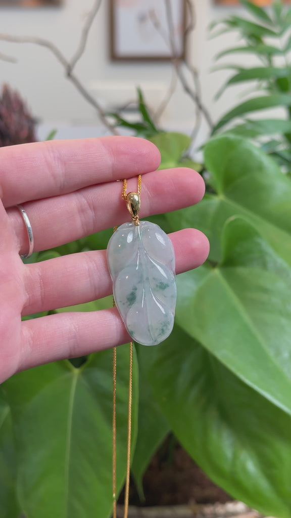 Genuine Ice Green Jadeite Jade Jin Zhi Yu Ye (Leaf) Necklace