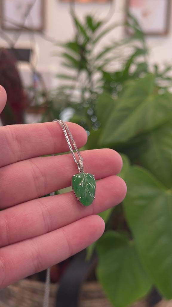 Genuine Ice Jadeite Jade Jin Zhi Yu Ye (Leaf) Necklace With 18k Gold Bail