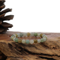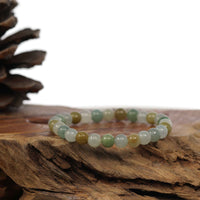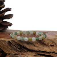 Genuine Ice Jadeite Jade Round Multiple Colors Beads Bracelet ( 7 mm)