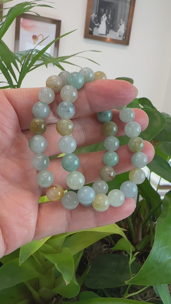 Genuine Ice Jadeite Jade Round Multiple Colors Beads Bracelet ( 9.5 mm)