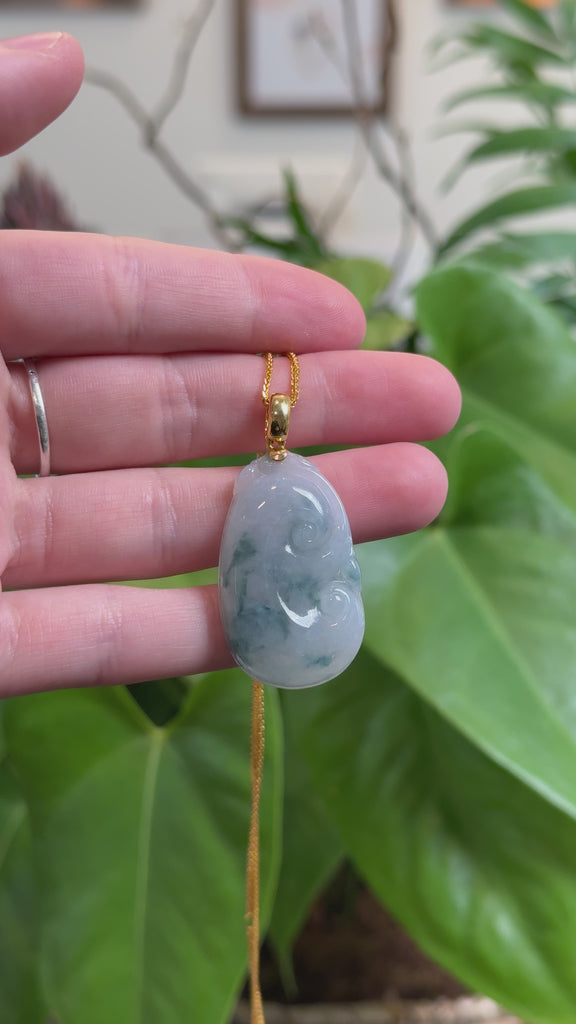 *Design concept-- "Ruyi" in Chinese literally means, "as you wish." This necklace portrays the timeless, good luck symbol in natural ice jadeite jade with light blue colors, Perfect for a gift for a friend who is venturing into a new chapter of life or a someone who is venturing into a new business.