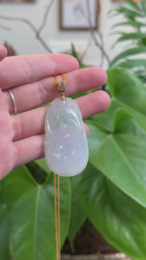 *Design concept-- "Ruyi" in Chinese literally means, "as you wish." This necklace portrays the timeless, good luck symbol in natural ice jadeite jade with light lavender colors, Perfect for a gift for a friend who is venturing into a new chapter of life or a someone who is venturing into a new business.