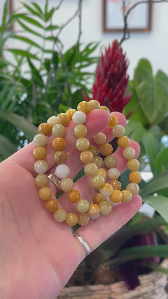 Genuine Jadeite Jade Round Yellow Beads Bracelet (9.5mm)