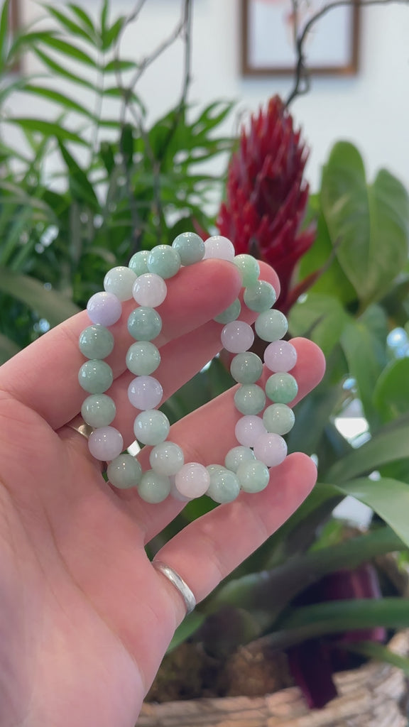 * DETAILS---Genuine Jadeite Jade Beads Bracelet. This bracelet is made with very high-quality genuine jadeite jade. The texture of these beads are very smooth and translucent. The classic round beads bracelet looks completely beautiful and affordable. It's a high-quality and perfect gift for yourself or your love. ( sent at random)