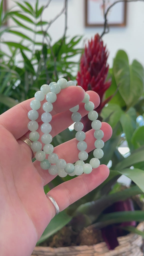 Genuine Jadeite Jade Round Green Beads Bracelet (8.5mm)