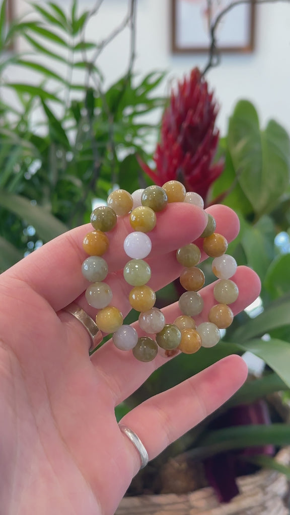 Baikalla Natural Jadeite Jade Round Multi Color Yellow & Green Beads Bracelet (9.5mm)