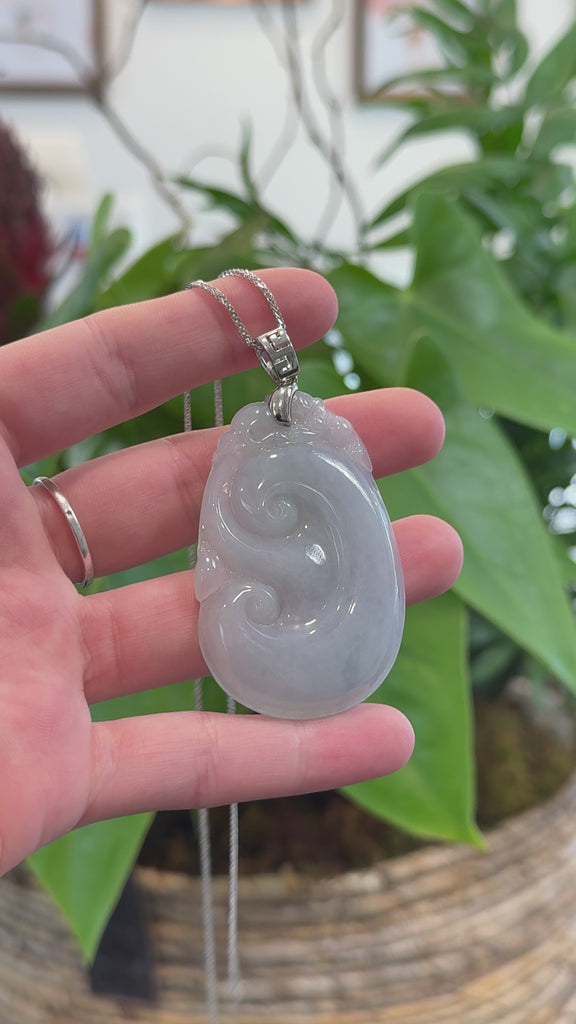 *Design concept-- "Ruyi" in Chinese means "as you wish," symbolizing luck and success. This unique necklace features a timeless good luck charm, crafted from natural Burmese light lavender jadeite jade and set with a silver bail. One of a kind, it’s a meaningful piece for those starting a new chapter in life or beginning a new business. A perfect gift for good fortune and prosperity.