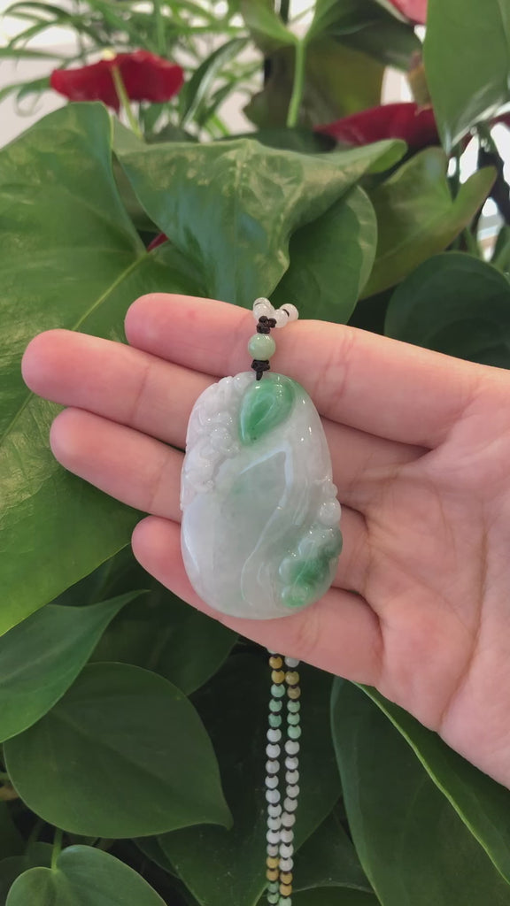Genuine Green Jadeite Jade "Longevity peach with lucky Pixiu Accent" Pendant Necklace With Real Jadeite Bead Necklace