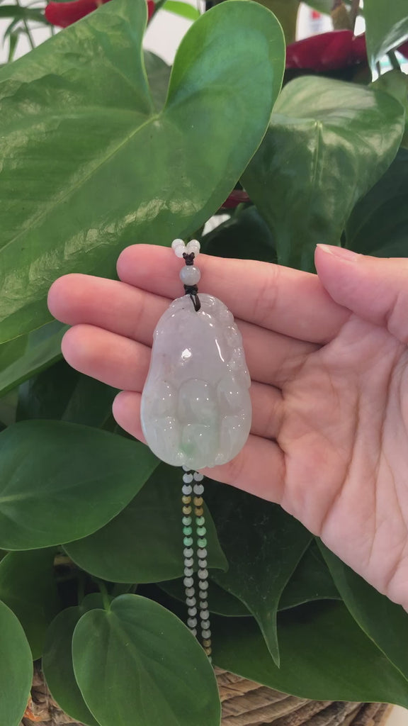 Genuine Green & Light Lavender "Buddha's Palm" Jadeite Jade Good Luck Pendant Necklace With Real Jadeite Bead Necklace