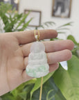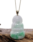 Goddess of Compassion" 14k Yellow Gold Genuine Burmese Jadeite Jade Guanyin Necklace With Good Luck Design