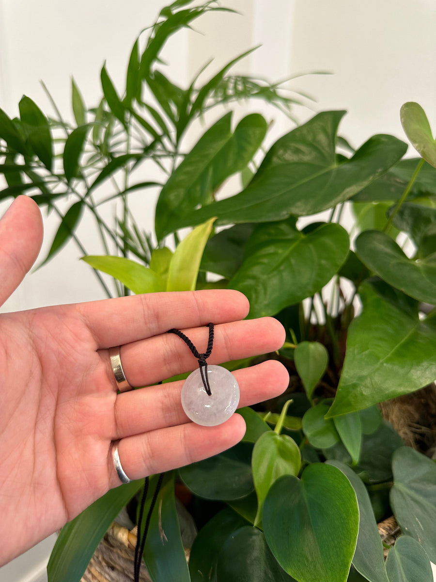 High End Natural Icy Burmese Jadeite Jade Ping An Kou Necklace
