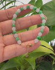 * INTRODUCTION--- This gorgeous green colors jadeite bracelet should be a staple in anyone's jewelry box. This bracelet is made with strong stainless steel cable to ensure durability. This bracelet is also made with very high-quality genuine apple green color jadeite jade. The bead's texture is so smooth and translucent. The rich and matching colors are what sets this bracelet apart. The classic round beads bracelet looks completely beautiful and exquisite. It's a perfect gift for yourself or your love. Sent at random. ( Sent at random. )