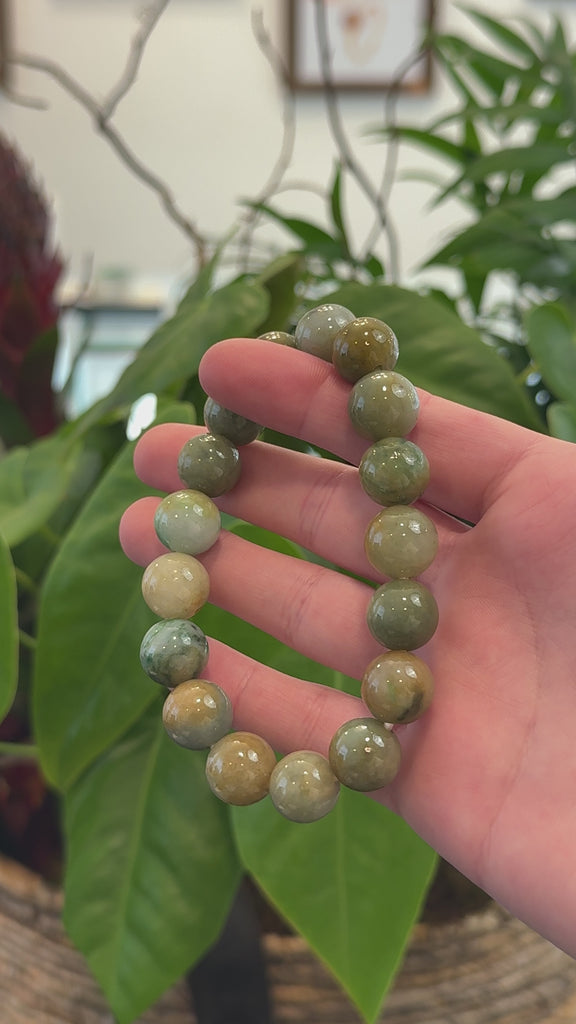 Natural Jadeite Jade 13mm Round Beads Bracelet ( 13 mm ) For Men