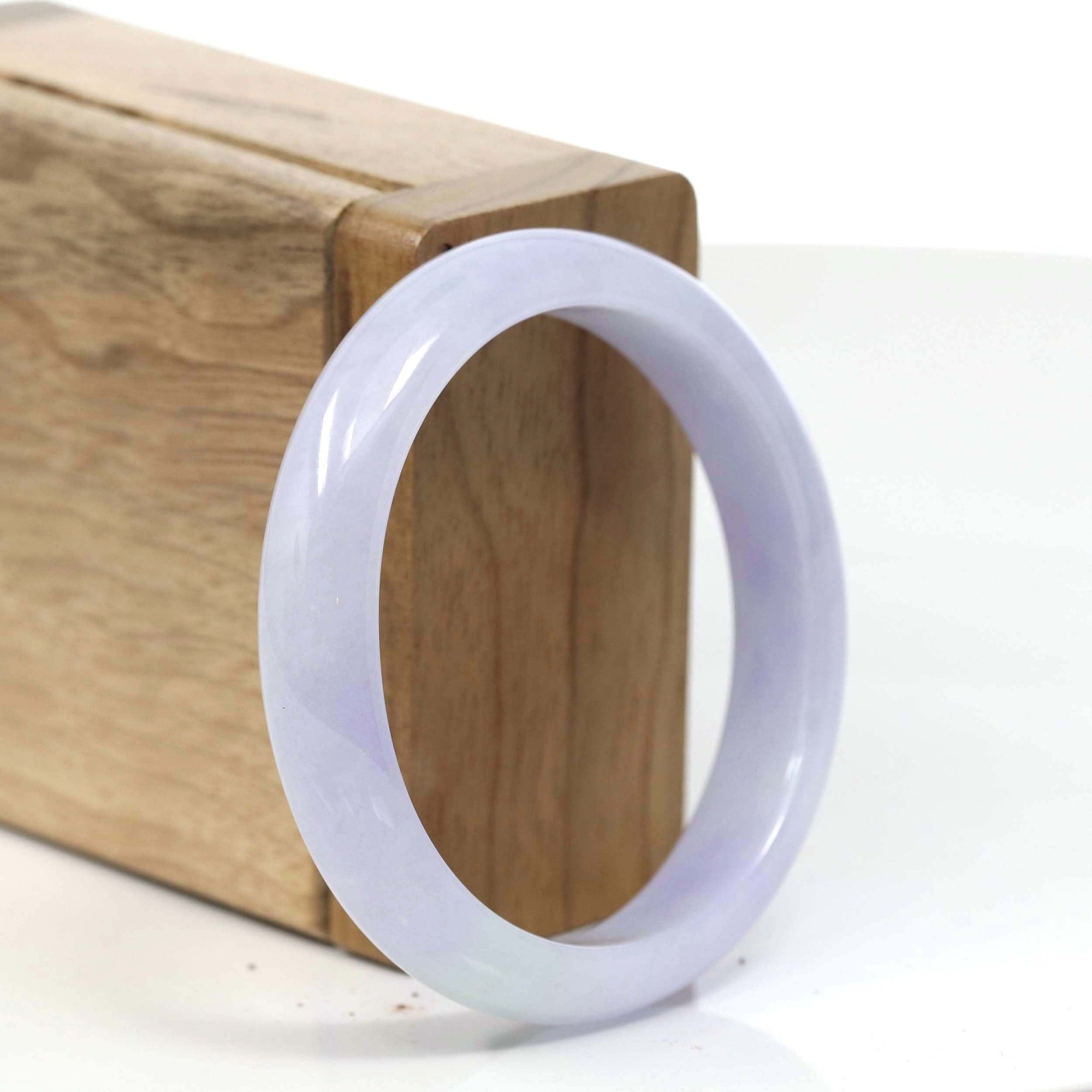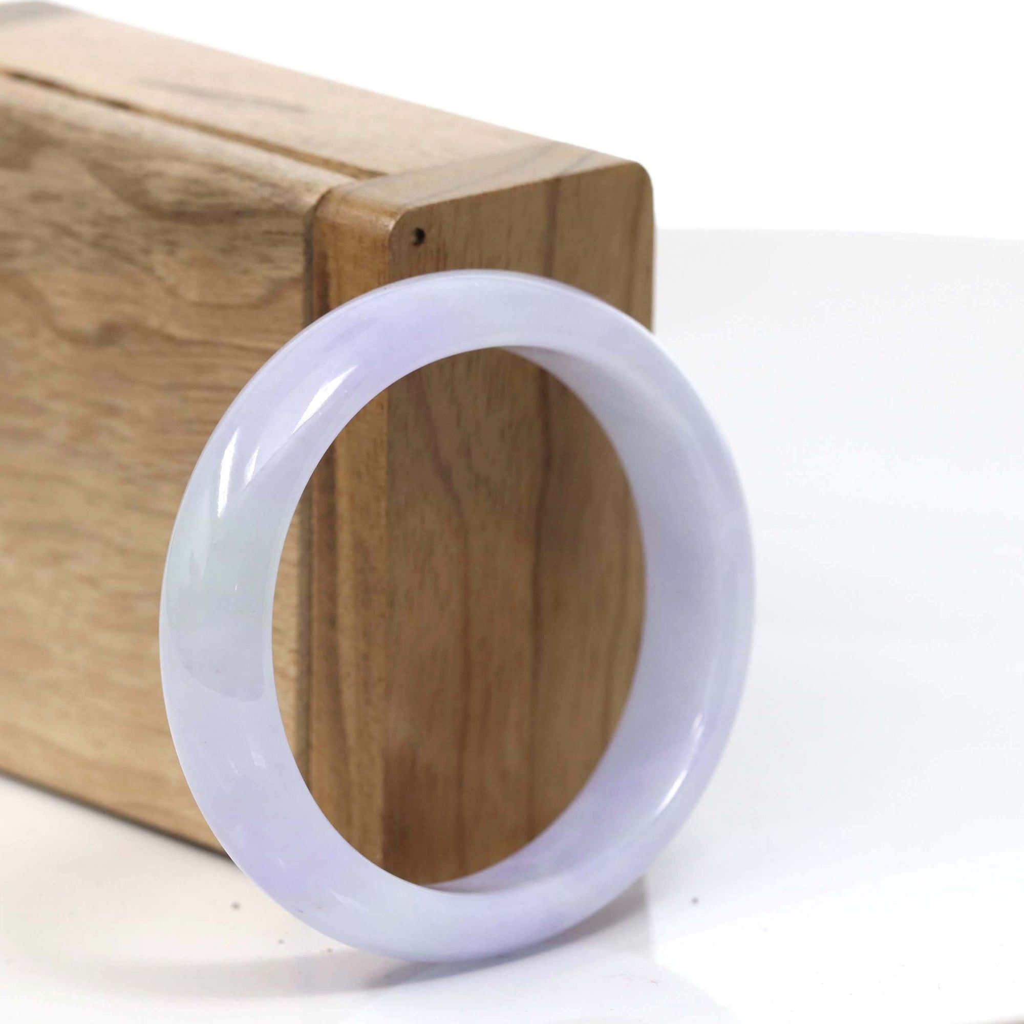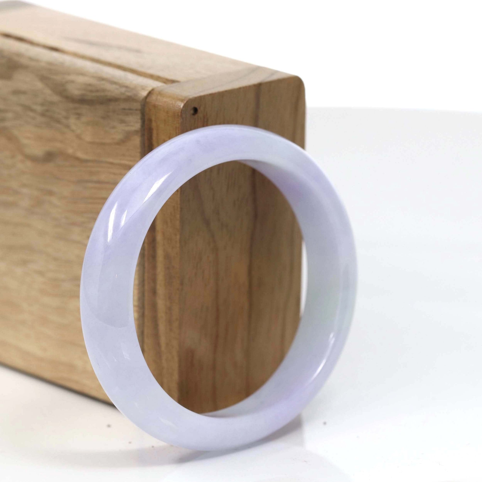 * DETAILS--- Genuine Burmese Jadeite Jade Oval Bangle Bracelet. This oval bangle is made with fine genuine Burmese lavender Jadeite jade. The jade texture is very good and smooth. It is a very luxurious lavender color. Looks so beautiful. It's a Classic half-round comfort oval-style bracelet. Just has a little natural line. Jadeite jade is the toughest gemstone on the planet. People believe that real jade is a lucky gemstone. It's a unique gift for you and your love.
