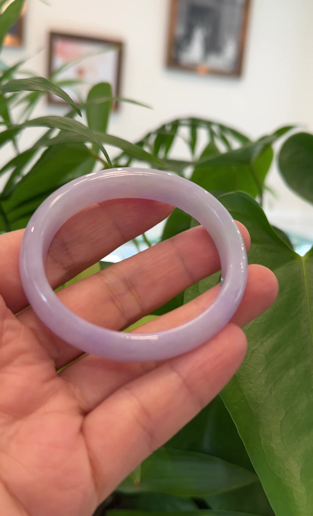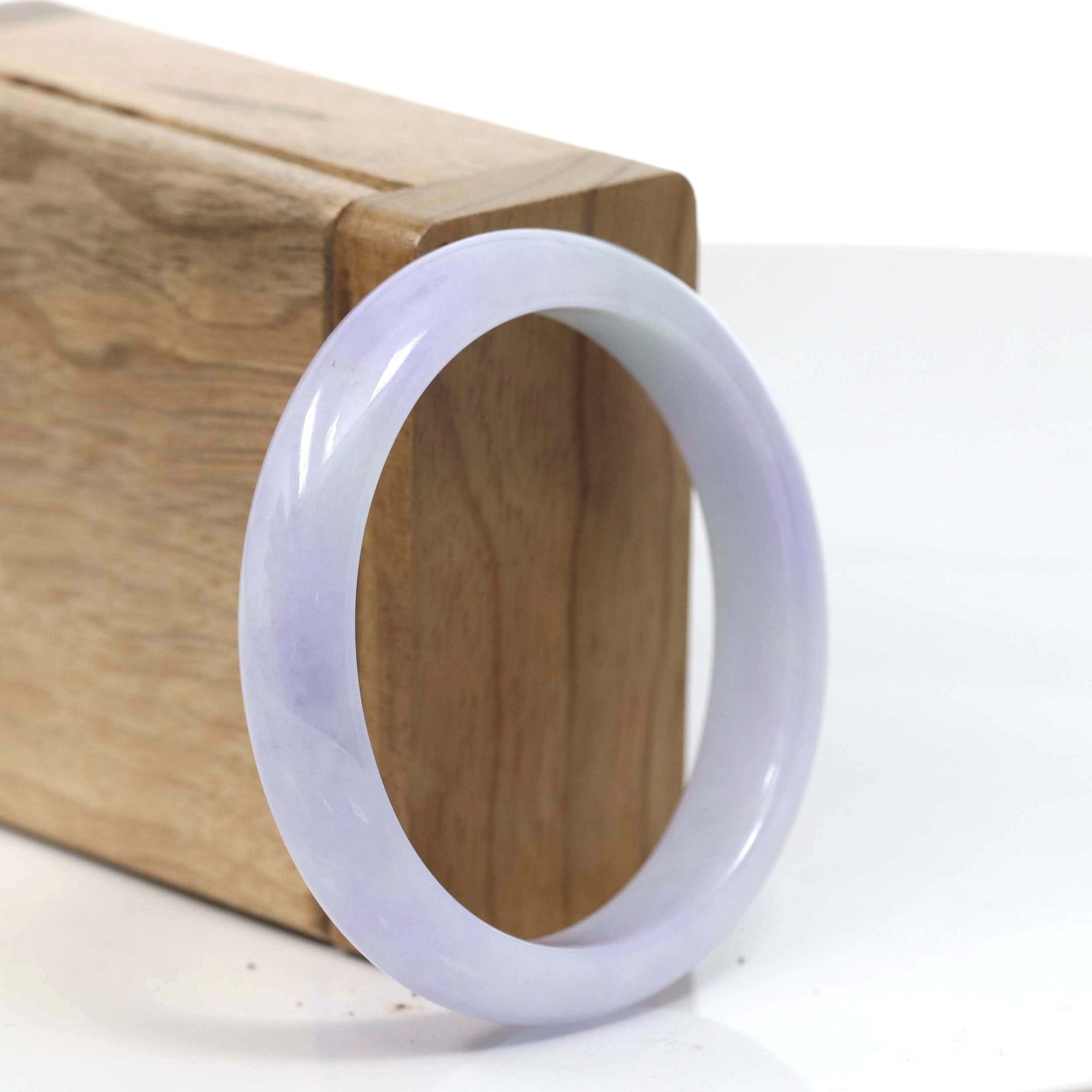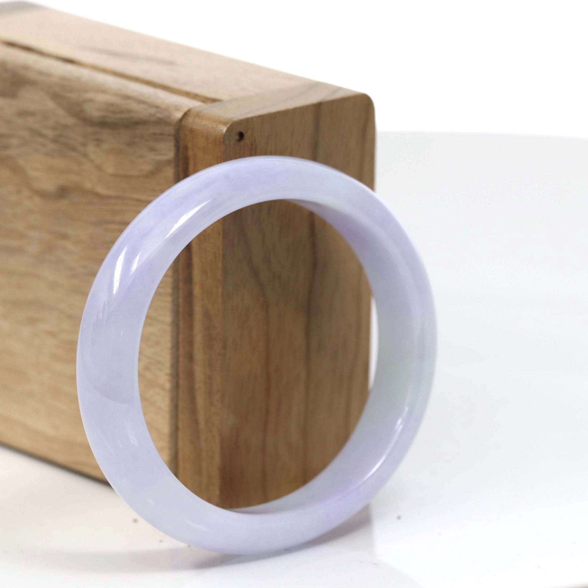 * DETAILS--- Genuine Burmese Jadeite Jade Oval Bangle Bracelet. This oval bangle is made with fine genuine Burmese lavender Jadeite jade. The jade texture is very good and smooth. It is a very luxurious lavender color. Looks so beautiful. It's a Classic half-round comfort oval-style bracelet. Just has a little natural line. Jadeite jade is the toughest gemstone on the planet. People believe that real jade is a lucky gemstone. It's a unique gift for you and your love.