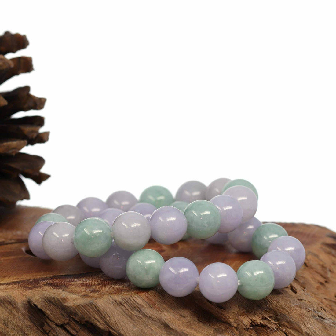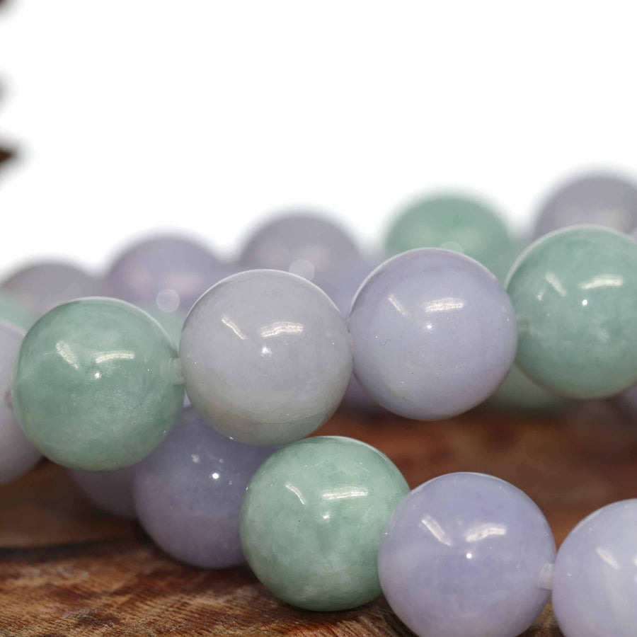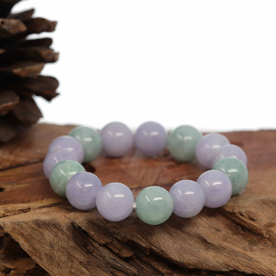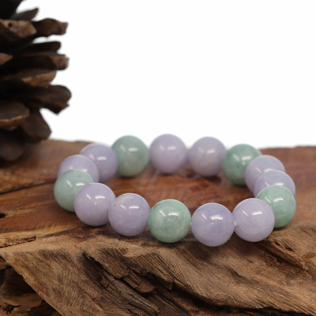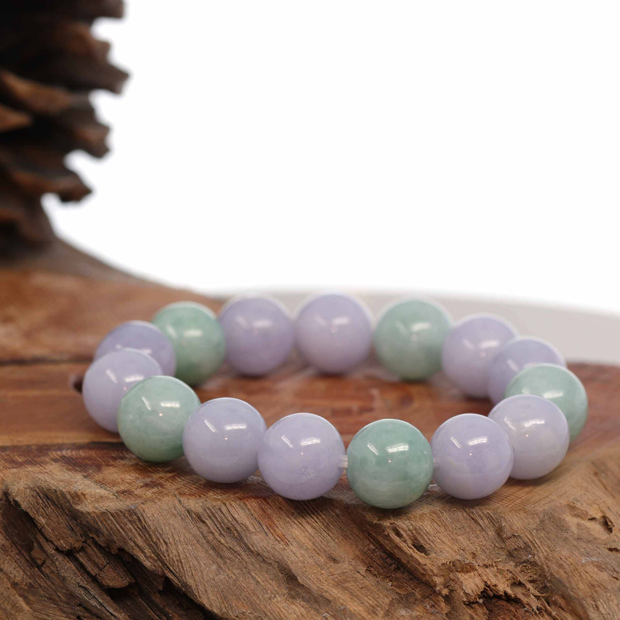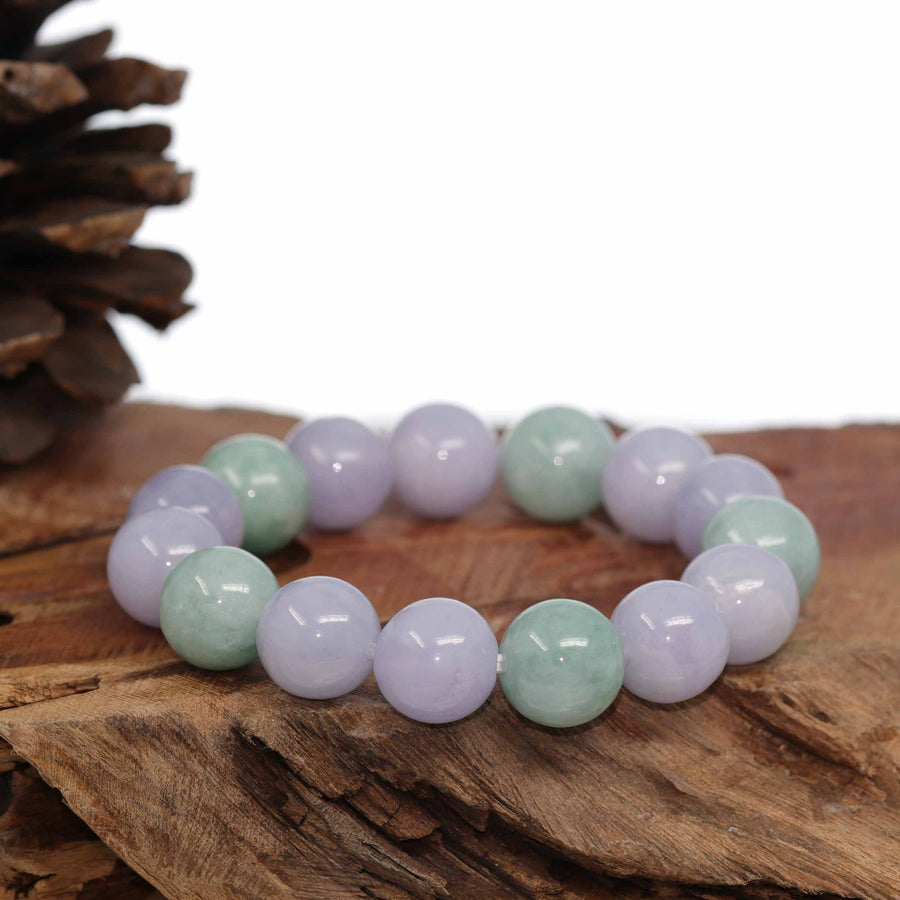 Jadeite Jade 13mm Round Green & Lavender Beads Bracelet ( 13 mm )