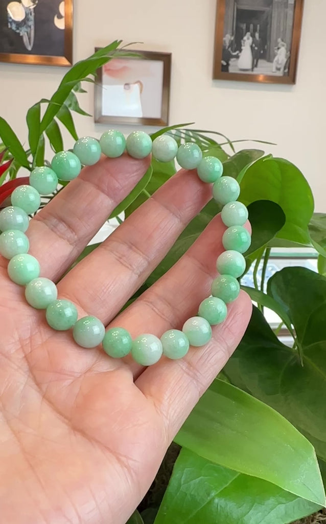 Jadeite Jade 9 mm Round Green Beads Bracelet ( 9 mm )