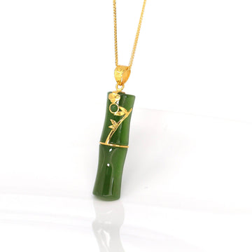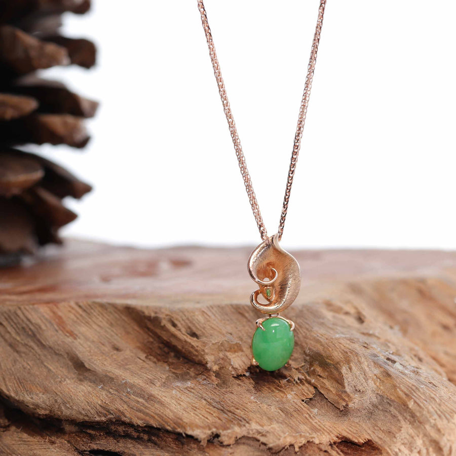 "Morning Glory" 18K Rose Gold Imperial Jadeite Jade Cabochon Necklace