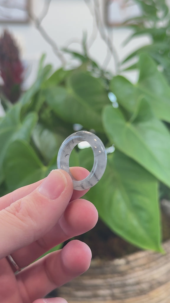 Natural Burmese Black Jadeite Jade Band Ring #8