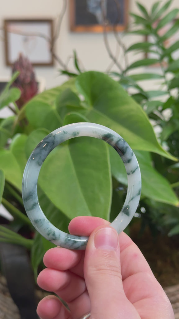 * DETAILS--- This bangle is crafted from genuine Burmese Jadeite jade. It features a smooth, translucent texture with a blue green color that looks absolutely beautiful. Its classic, traditional round design is perfect for those who appreciate timeless style. Known for its durability, jadeite is also believed to bring good luck. This bangle makes a thoughtful and meaningful gift for yourself or someone special.
