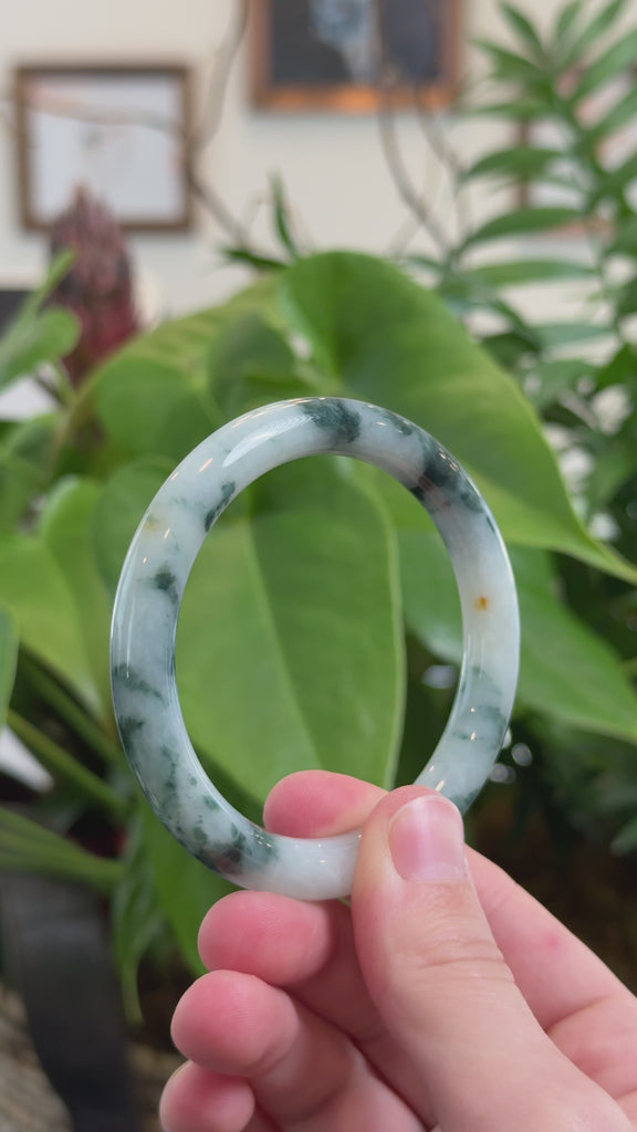 * DETAILS--- This bangle is crafted from genuine Burmese Jadeite jade. It features a smooth, translucent texture with a blue green color that looks absolutely beautiful. Its classic, traditional round design is perfect for those who appreciate timeless style. Known for its durability, jadeite is also believed to bring good luck. This bangle makes a thoughtful and meaningful gift for yourself or someone special.
