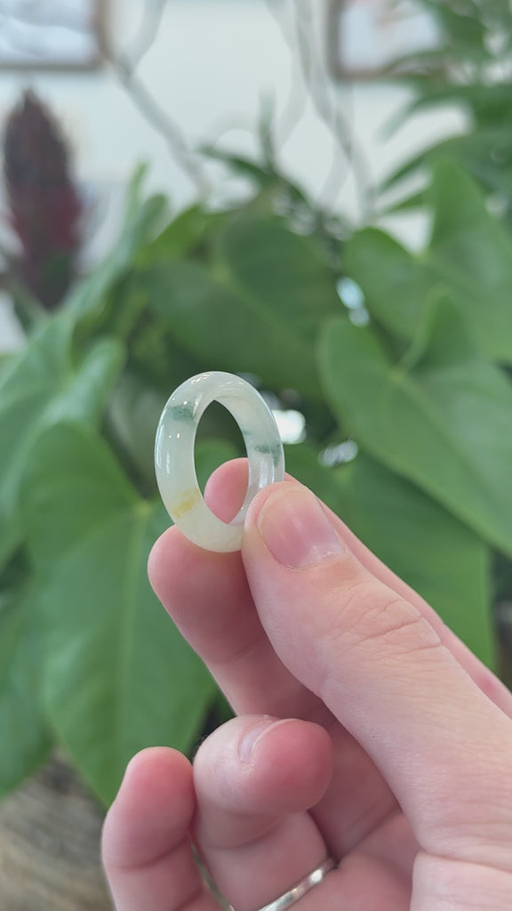 * DETAILS--- This ring is crafted from high-quality genuine Burmese blue-green jadeite jade, featuring a smooth, icy texture with a stunning blend of blue and green hues. Designed in a classic half-round style, it resembles a sleek jade bangle for your finger, with natural green patches adding to its unique charm. A timeless and meaningful gift for both men and women.