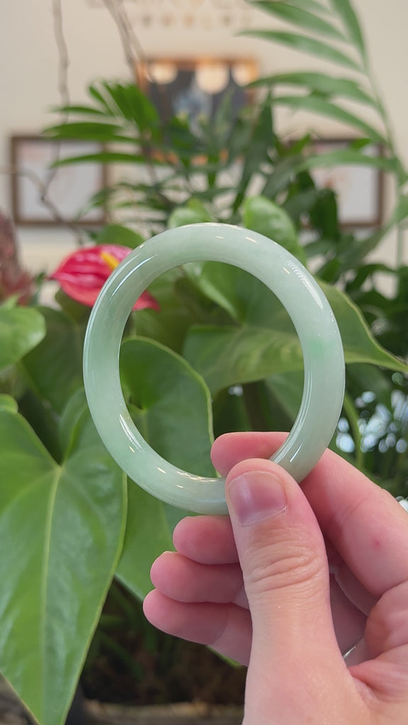 * DETAILS--- This bangle is crafted from genuine Burmese Jadeite jade. It has a smooth, translucent Icy texture with a light green color that looks absolutely beautiful. Featuring some light yellow patches on the bangle. Its classic, traditional round design is perfect for those who appreciate timeless style. Known for its durability, jadeite is also believed to bring good luck. This bangle makes a thoughtful and meaningful gift for yourself or someone special.