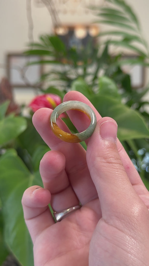 Natural Oil Green Brown Patch Burmese Jadeite Jade Band Ring #9.25