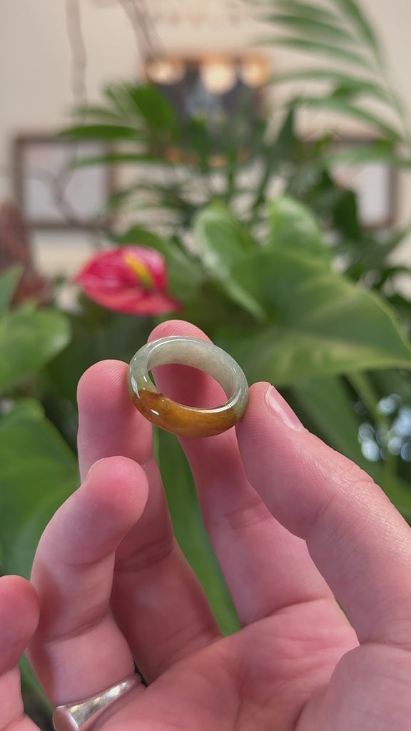 Baikalla Oil Green & Brown Burmese Jadeite Jade Traditional Ring #6.75