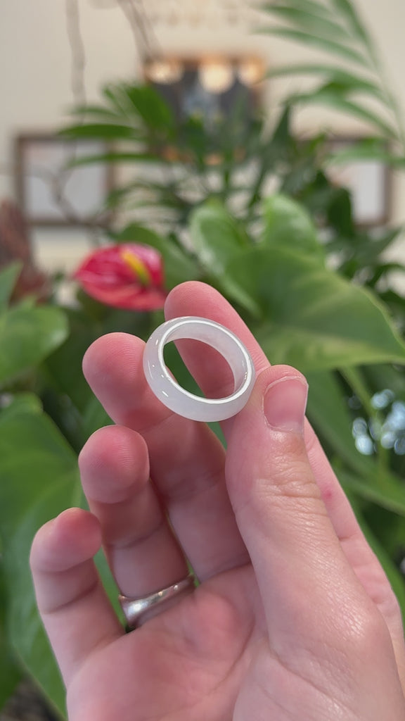Natural Icy Faint Green Burmese Jadeite Jade Band Ring #7.25