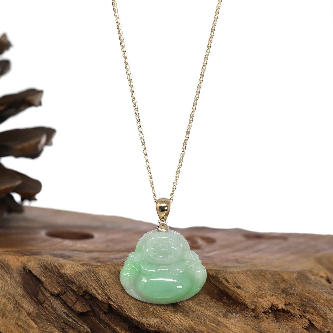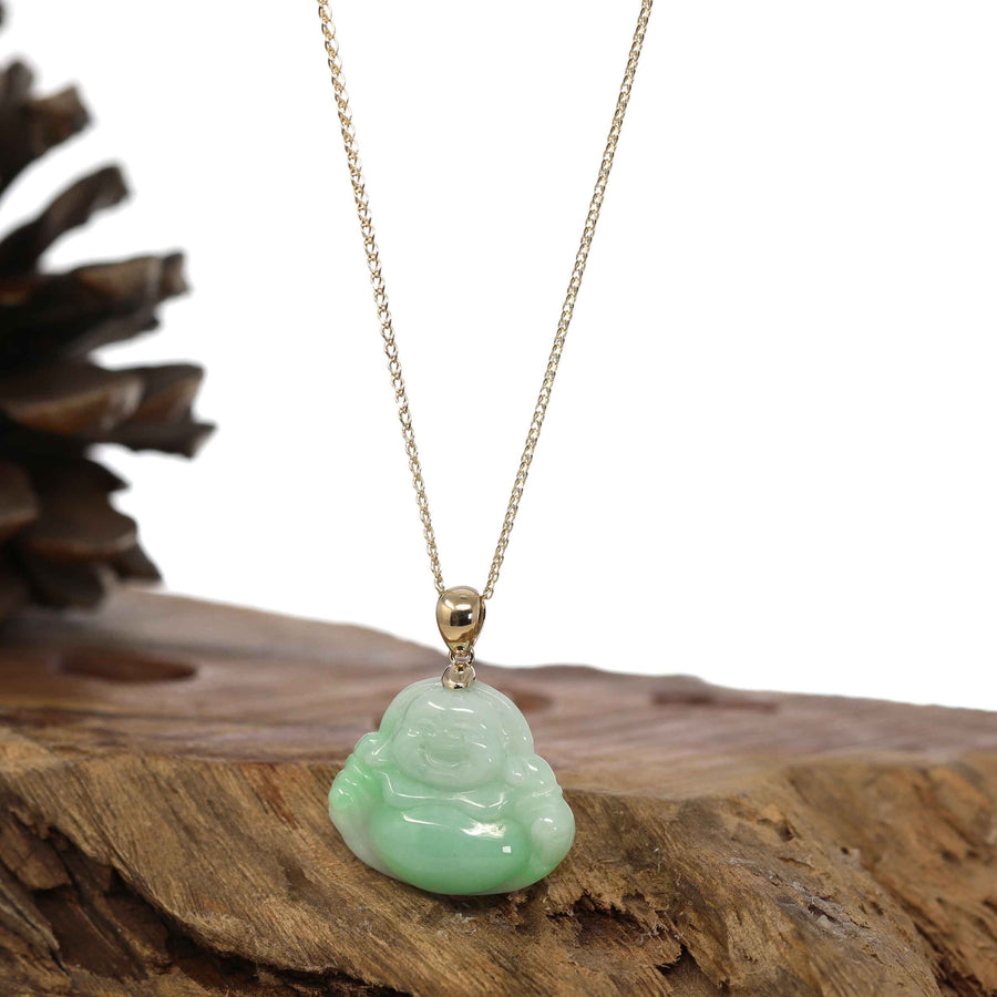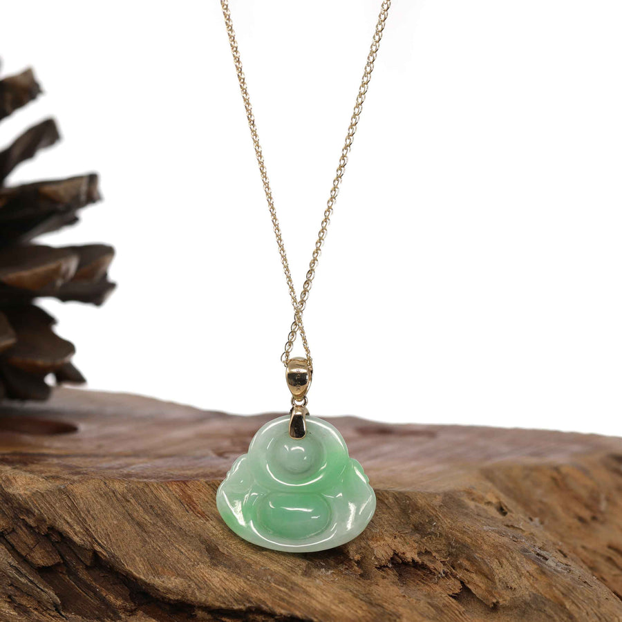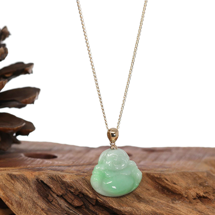 Natural Burmese Jadeite Jade Happy Buddha With 14k Yellow Bail
