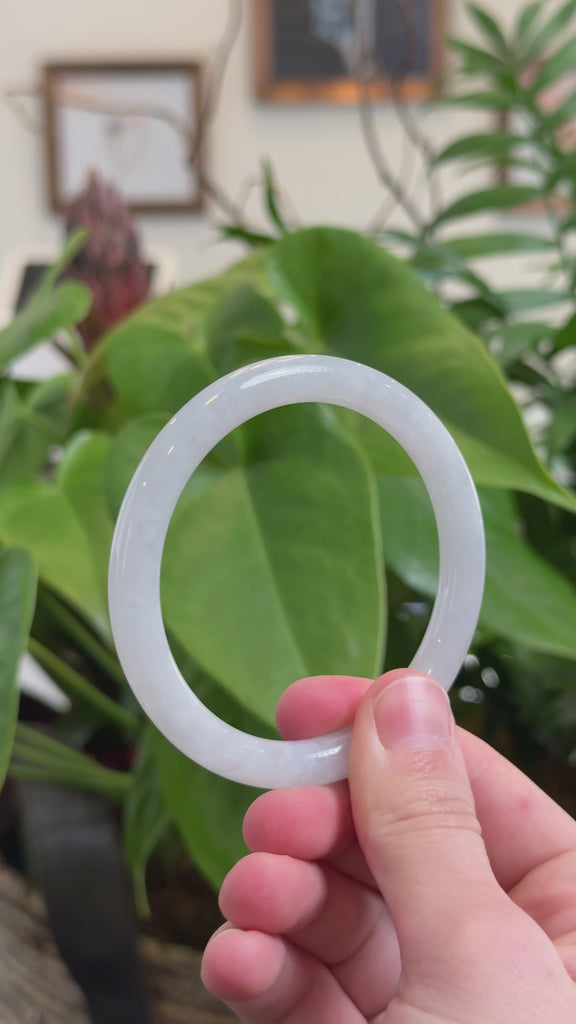 * DETAILS--- This bangle is crafted from genuine Burmese Jadeite jade. It features a smooth, translucent ice texture with a light lavender color that looks absolutely beautiful. Its classic, traditional round design is perfect for those who appreciate timeless style. Known for its durability, jadeite is also believed to bring good luck. This bangle makes a thoughtful and meaningful gift for yourself or someone special.