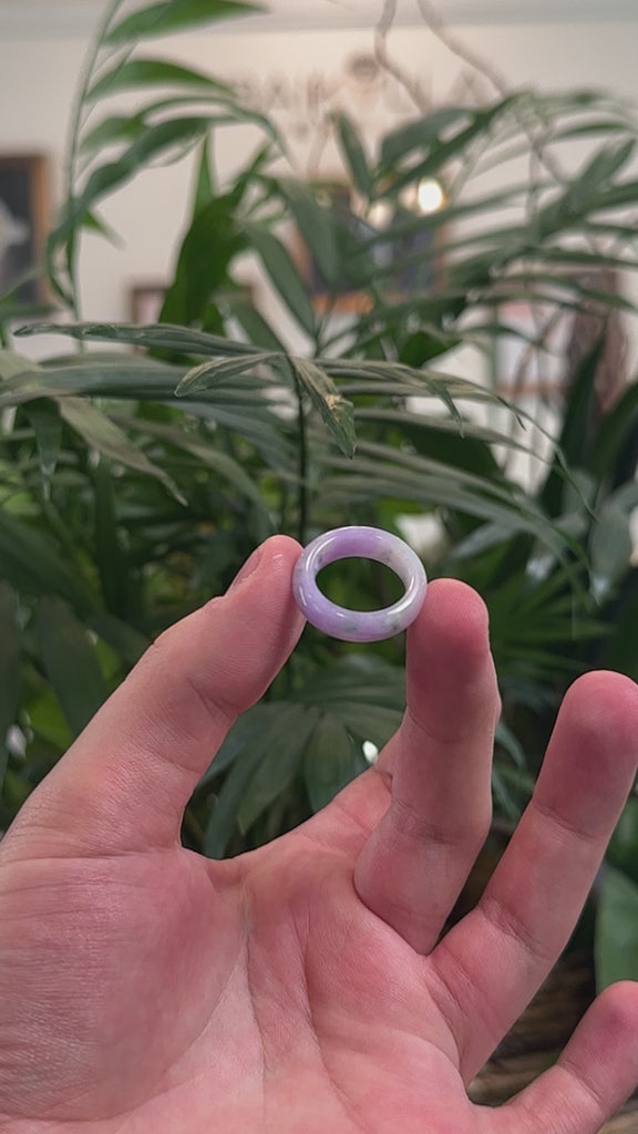 Baikalla Vixen Purple W/ Light Green Flowers Burmese Jadeite Jade Finger Bangle #4.5