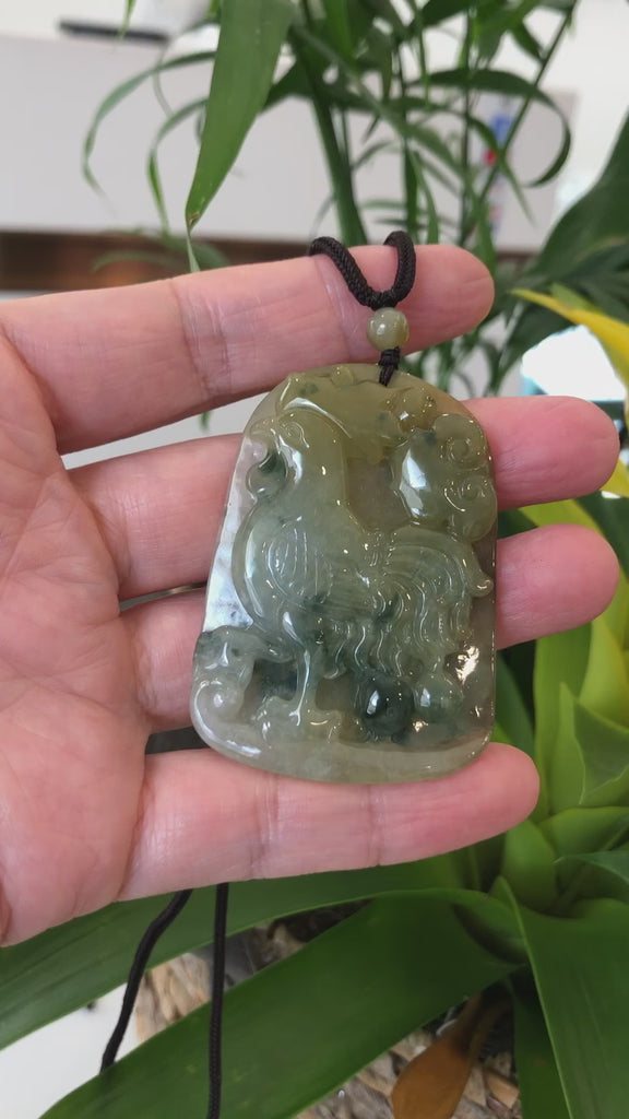 Natural Honey Yellow Jadeite Jade "Rooster" Pendant Necklace For Men, Collectibles.