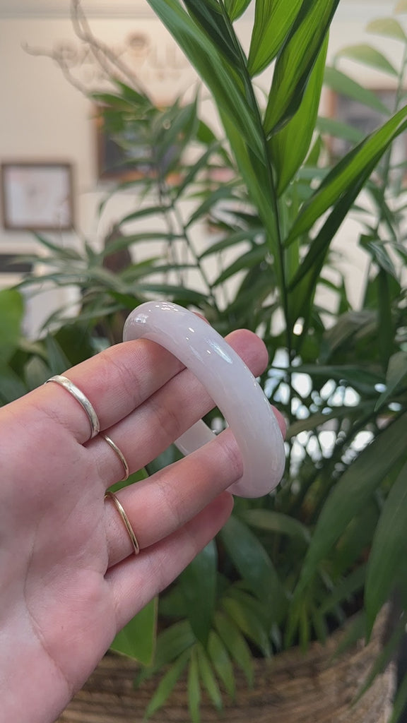 * DETAILS--- This beautiful luxury bangle is made from premium Burmese Jadeite jade, featuring a smooth ice texture and a lovely light lavender color. Truly a stunning bangle. The smooth texture and light pink/lavender color really makes this bangle stand out. Its classic half-round design highlights its natural beauty and ensures a comfortable fit. A timeless piece, perfect as a thoughtful gift for yourself or someone truly special.