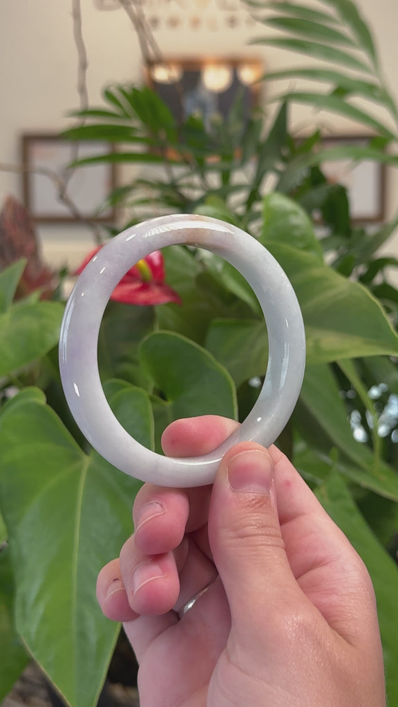 * DETAILS--- Genuine Burmese Jadeite Jade Bangle Bracelet. This bangle is made with high-quality genuine Burmese Jadeite jade. The jade texture is fine and smooth. This bangle is so unique with a light green, light lavender and a small red patch, all in one bangle. Just some minimal cloudy spots. The Classic half-round comfort style bracelet. It's a luxury gift for you and your love.