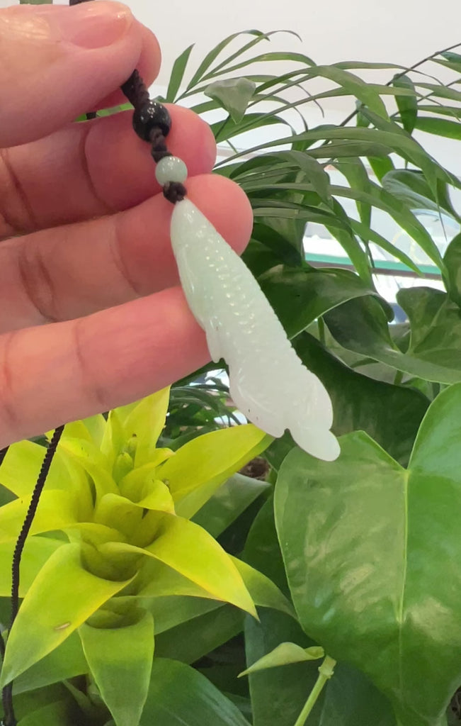 Natural Green Jadeite Jade "Fish" Pendant Necklace